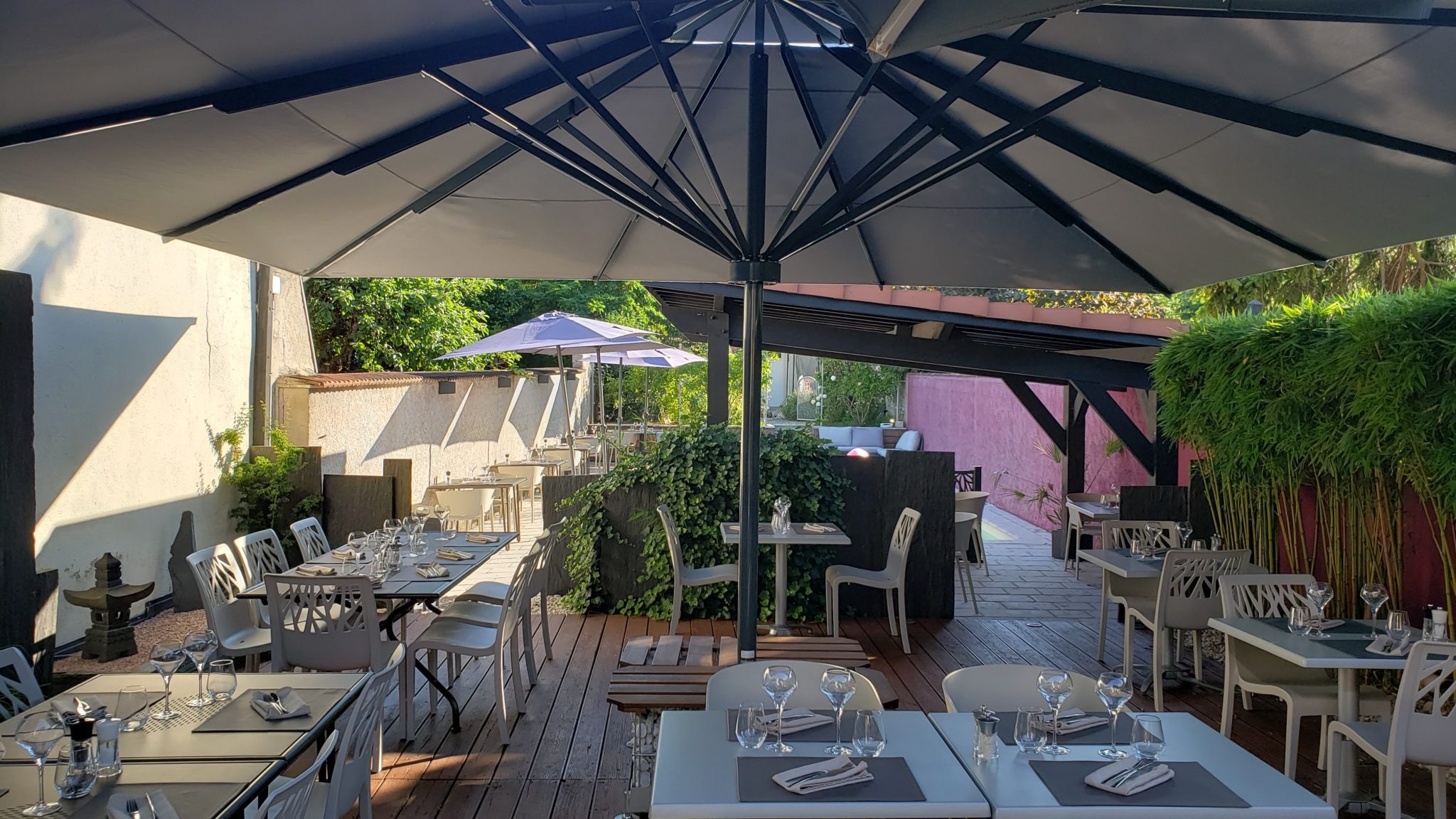 Dès les premiers rayons de soleil, notre terrasse se transforme en un véritable havre de paix au cœur de Laxou. Loin du tumulte, venez savourer la cuisine inventive de notre Chef à l'ombre de nos parasols.