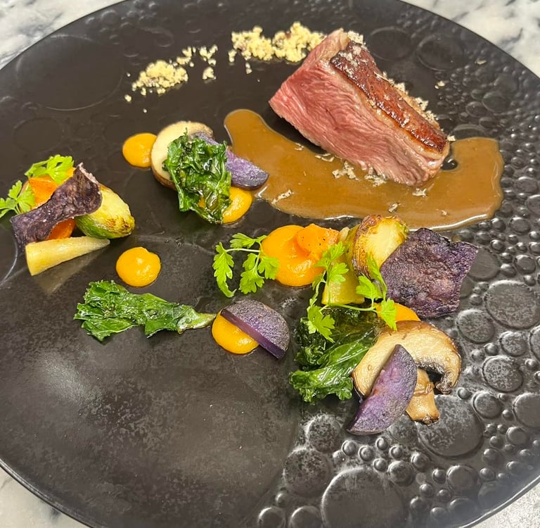 La Signature : Des assiettes graphiques et soignées où les associations de saveurs — comme le travail délicat des poissons ou l'union audacieuse des herbes et des fruits — surprennent les palais les plus fins.