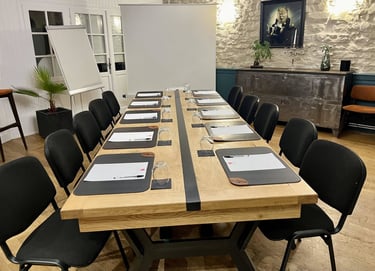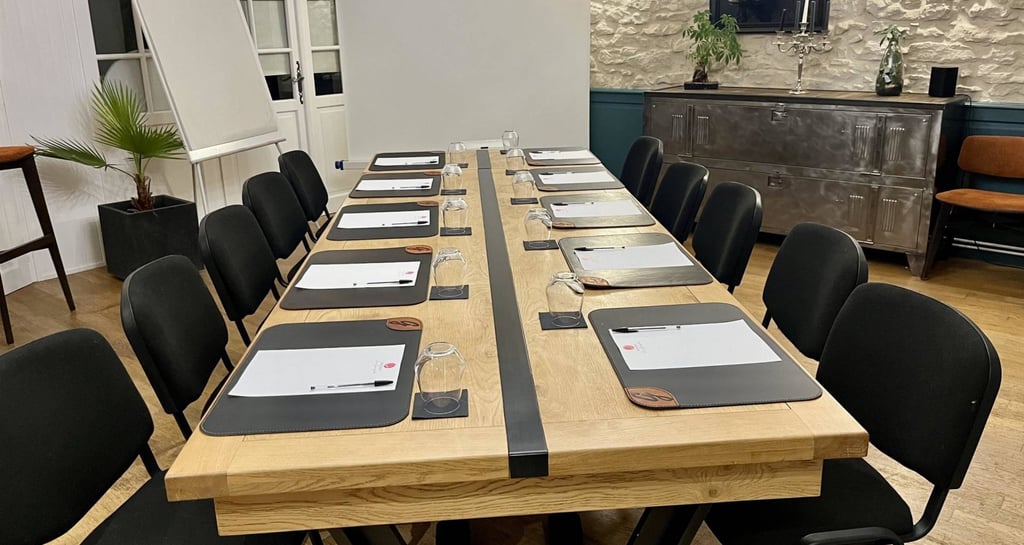 Alliez travail et gastronomie dans une salle calme et chaleureuse, pensée pour la concentration et l'échange. Située aux abords de notre terrasse, notre espace dédié accueille vos séminaires, réunions d'équipe ou déjeuners d'affaires jusqu'à 16 convives maximum.